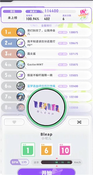 1.在游戏中,随意选择一首歌曲,进入相应关卡开始挑战。